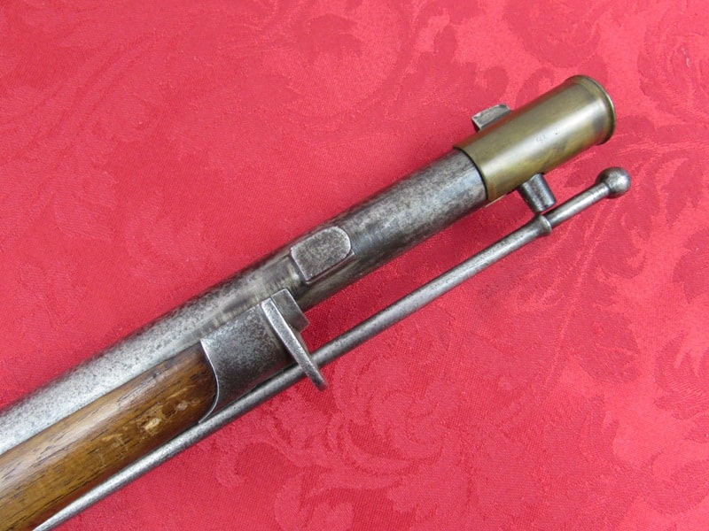 In very good plus general condition. 43 inch overall length. 15.43mm caliber. Steel mounted. Very good plus metal bearing a pleasing smooth age patina throughout. Fine markings. Matching serial numbers. Original cleaning rod and brass muzzle cover. Excellent action with original needle still present. Excellent bore. Very good stock with normal handling marks. A rare and desirable late Imperial German Dreyse model! Free shipping