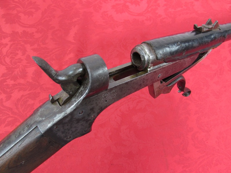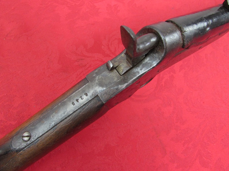 In good to very good original condition. 24 inch barrel. 52 caliber. Very good metal bearing an untouched age patina throughout with some fine oxidation in areas. Fine markings. Excellent action and good bore with fine rifling (will clean-up to better). Good original barrel leather liner is showing some normal losses (see photos) with all solid stitching. Very good stock showing one tight stress crack on the right side of the wrist (see photos). No looseness. Brass butt plate. A scarce and desirable Civil War carbine! Free shipping.