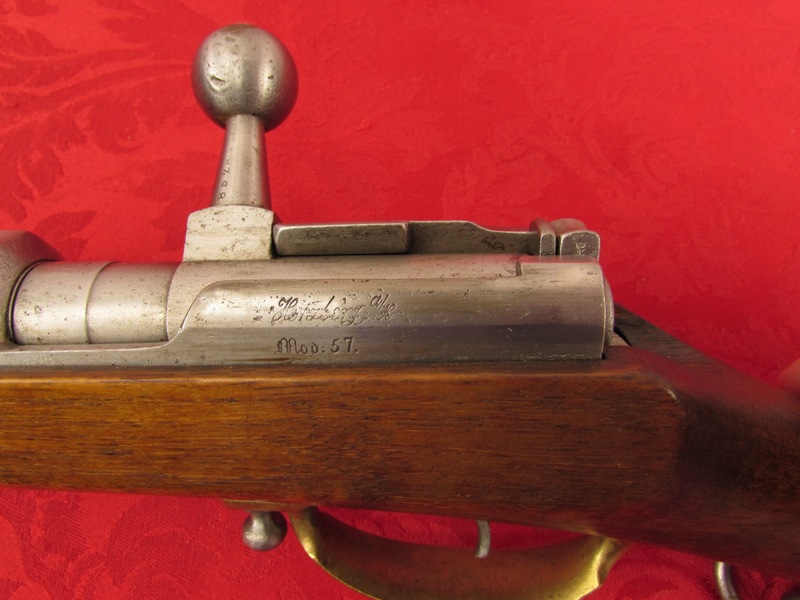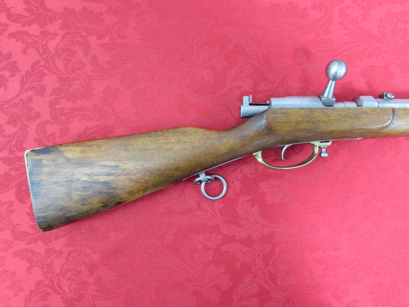 In very good plus original condition. 31 5/8 inch overall length. 15.43mm caliber. Brass trigger guard and butt plate. Very good metal with some very fine oxidation on barrel, Very good markings. 1871 dated. Matching serial numbers. Original saddle rings. Excellent action with original needle sill present. Fine bore with fine rifling. Fine stock with some light handling marks and light staining on the lower butt stock area. Light inspector stamps are present. A scarce and desirable needle carbine! Free shipping.